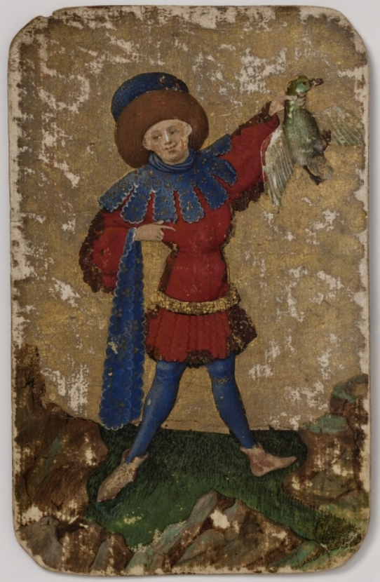 - Der Unter der Eicheln aus einem Kartendeck mit deutschen Farben, ca. 1540–1560; derzeit im Württembergischen Landesmuseum, Stuttgart. Creative Commons Attribution-NonCommercial-ShareAlike 4.0 International (CC BY-NC-SA 4.0) Lizenz. © Deutsches Spielkartenmuseum, Leinfelden-Echterdingen.