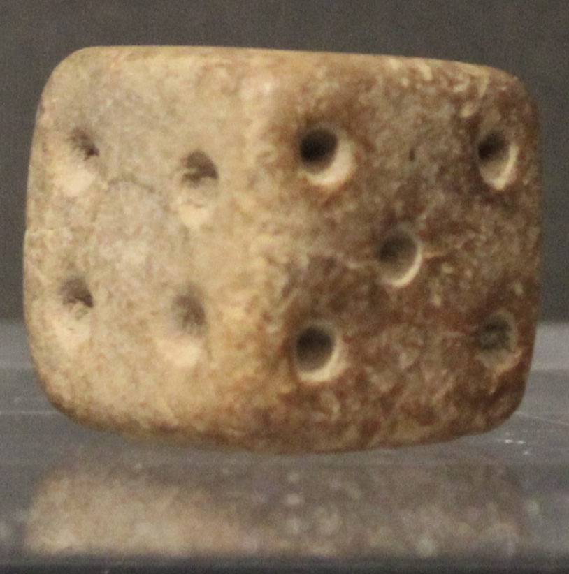 - Terrakotta-Würfel aus Mohenjo-Daro (Pakistan), 2500 bis 1900 v. Chr. Fotografiert von Zunkir im Ashmolean Museum, Oxford, Bild beschnitten.Wikimedia Commons, Attribution-Share Alike 4.0 International Lizenz.